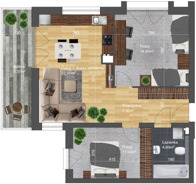 | Pokój 2 | 14,93 m2 |